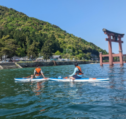 白鬚神社は、約二千年の歴史を伝える近江最古の社。湖面に浮かぶ朱の大鳥居は、朝夕に表情を変えながら美しい景観を描き出します。長寿・開運の神として古くから信仰を集め、今もなお琵琶湖を象徴する存在として静かに息づいています。